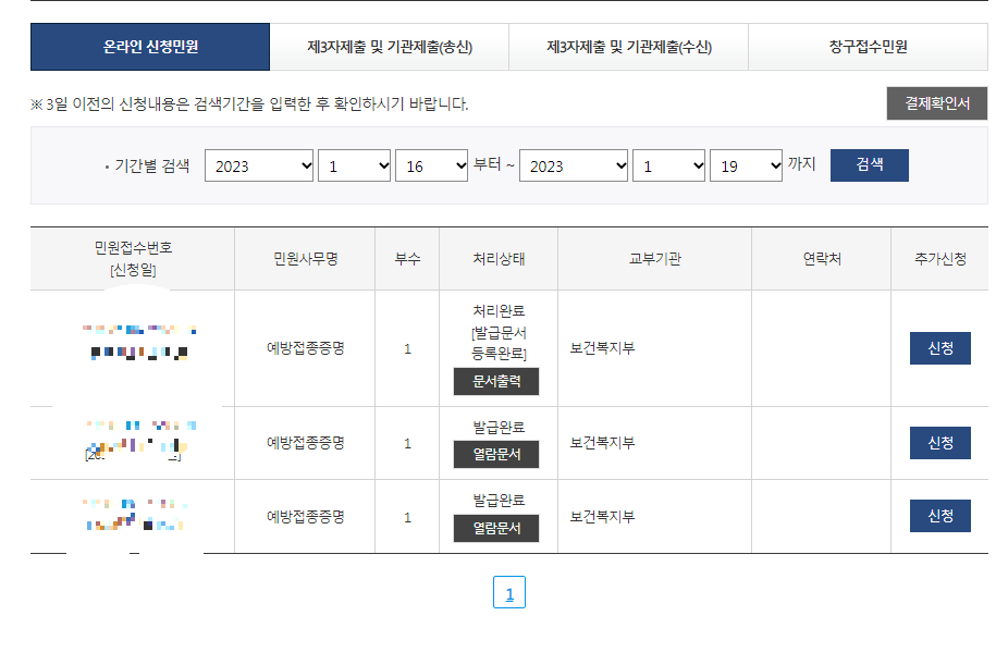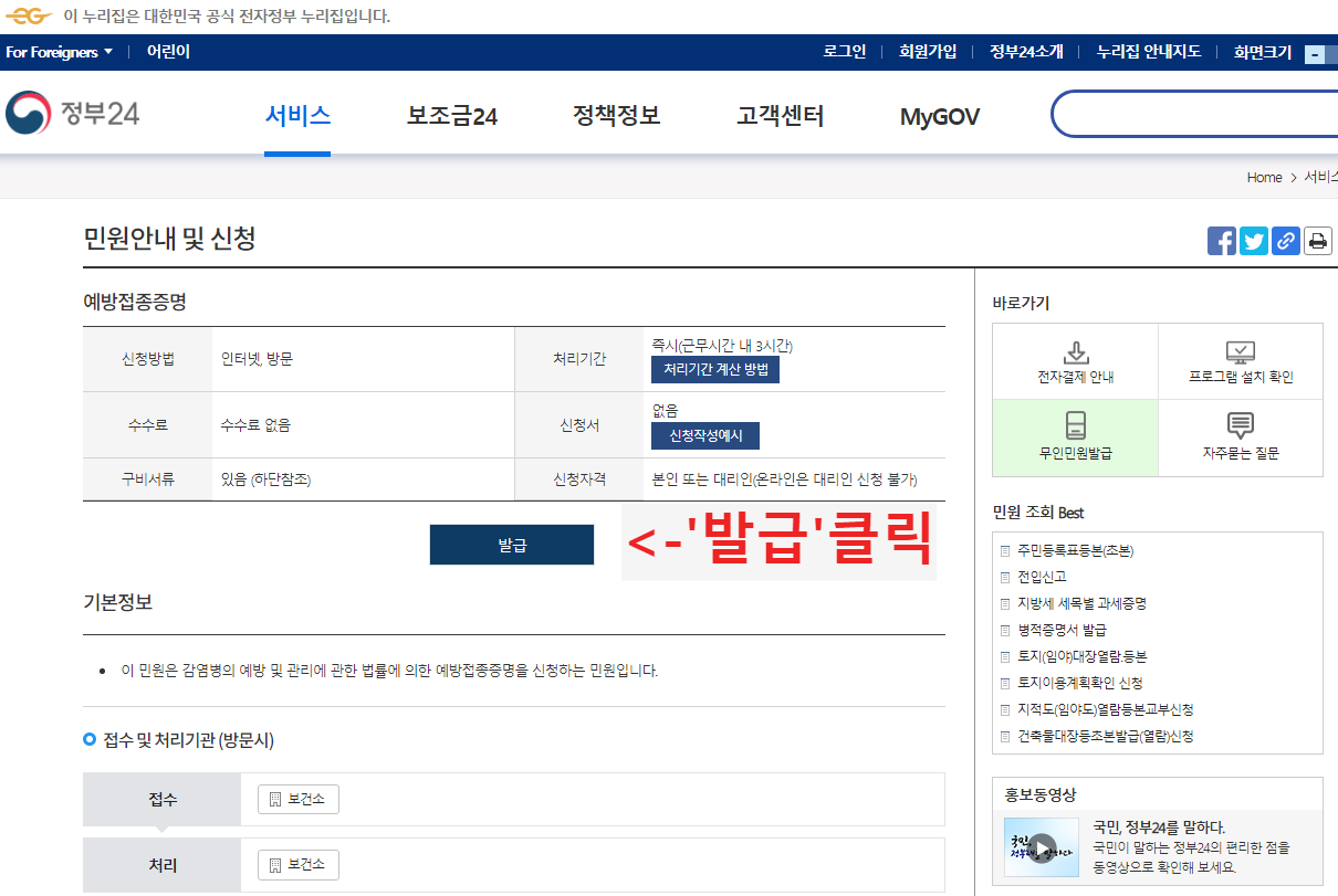 정부 24로 가셔서 백신 접종 확인서를 발급받으면 되는데요;