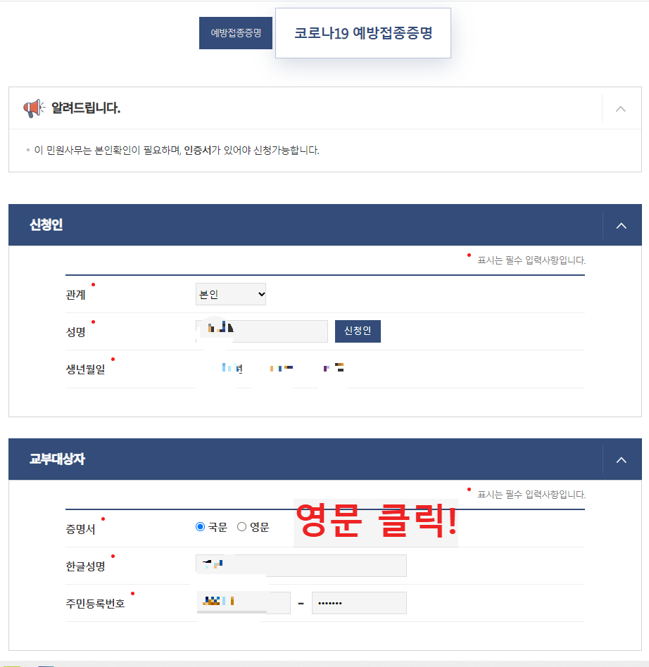 그래도 혹시 몰라서 백신 접종 확인서를 받아서 가려고 준비하려다가 이 부분을 공유하고자 해요!