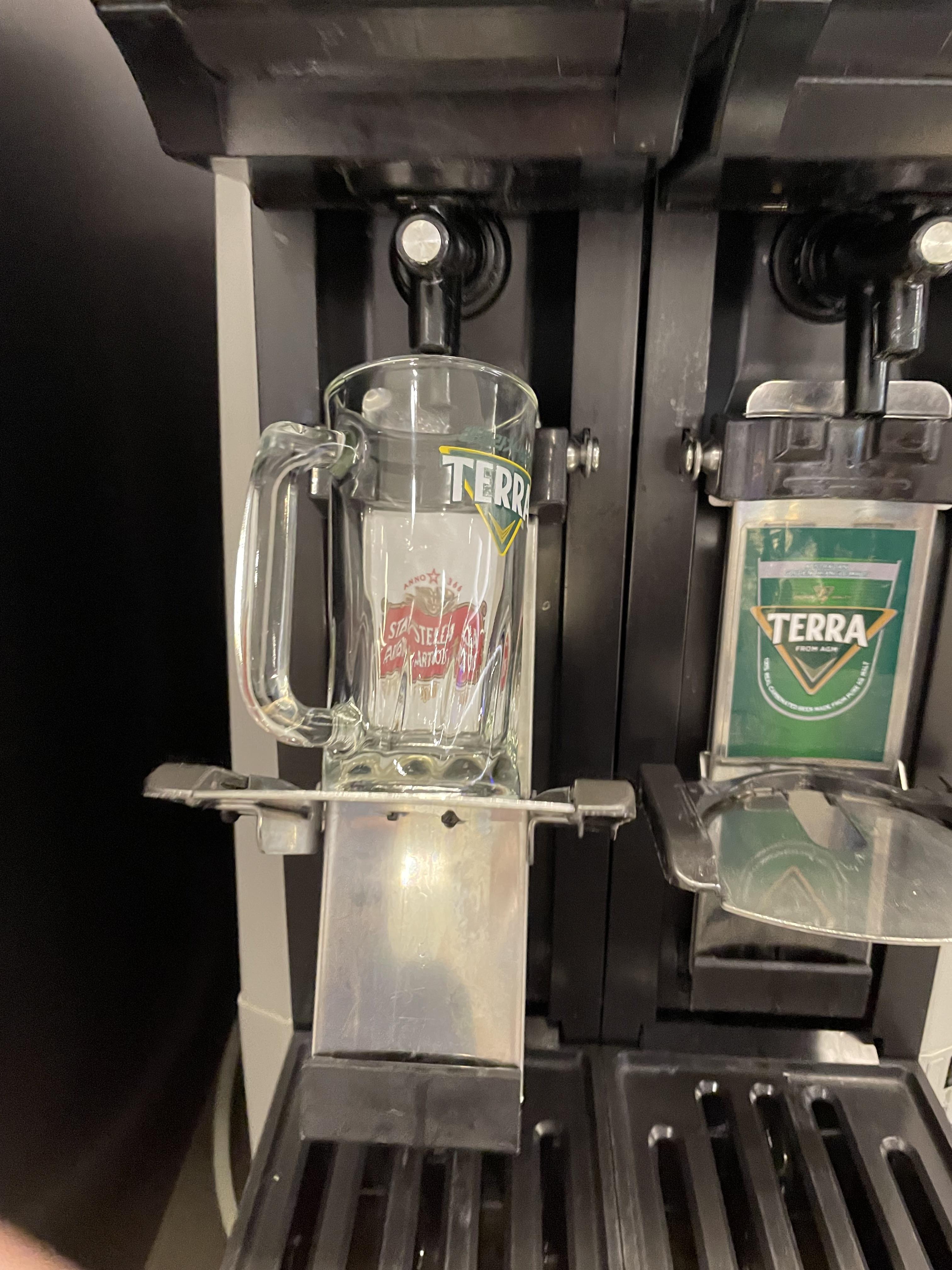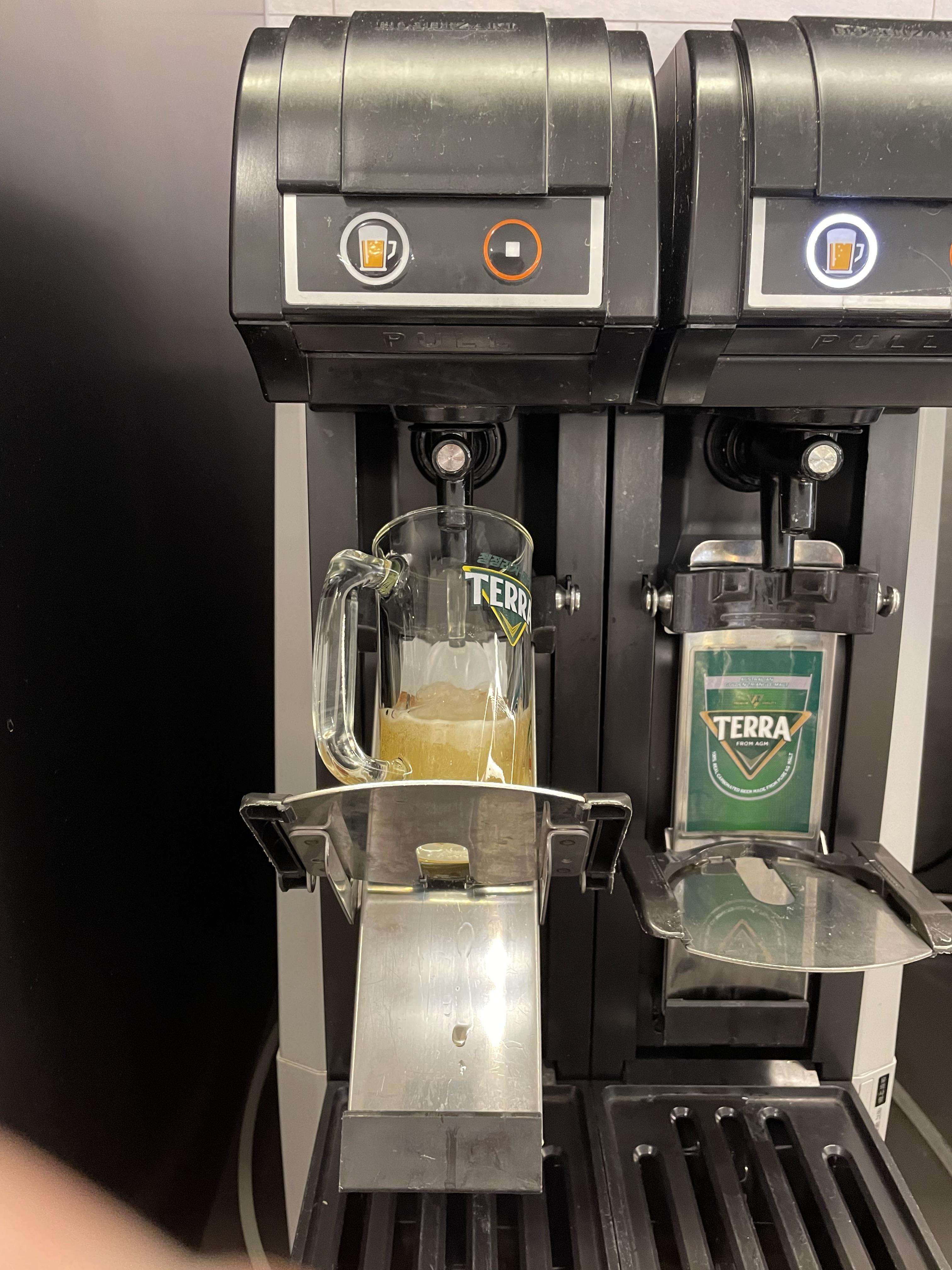 가자마자 맥주부터 한잔을 하는데 맥주를 자동으로 따라주는 기계가 있습니다.