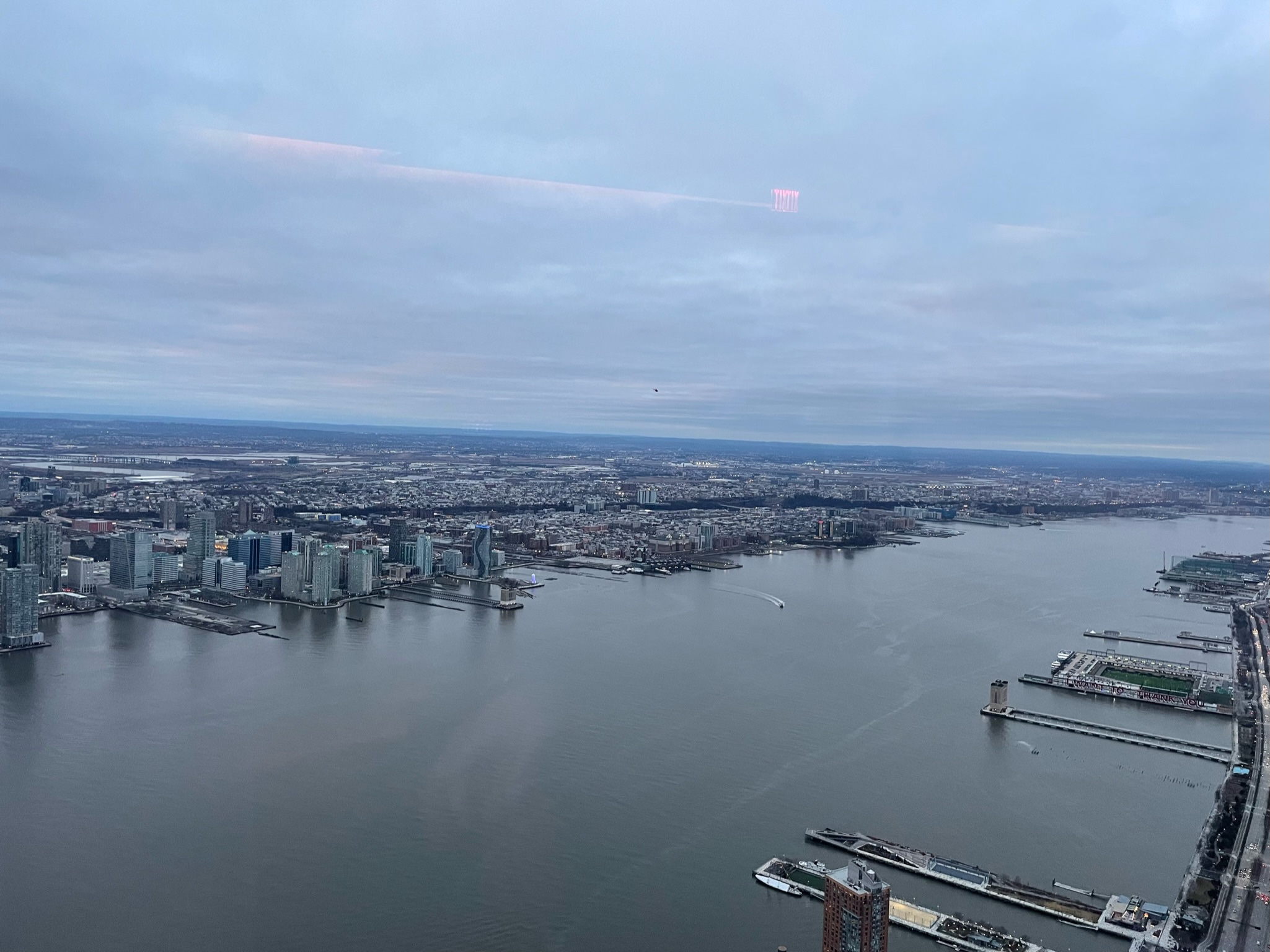 야경이에요. 맨해튼 중심부가 멀리서 보입니다.
