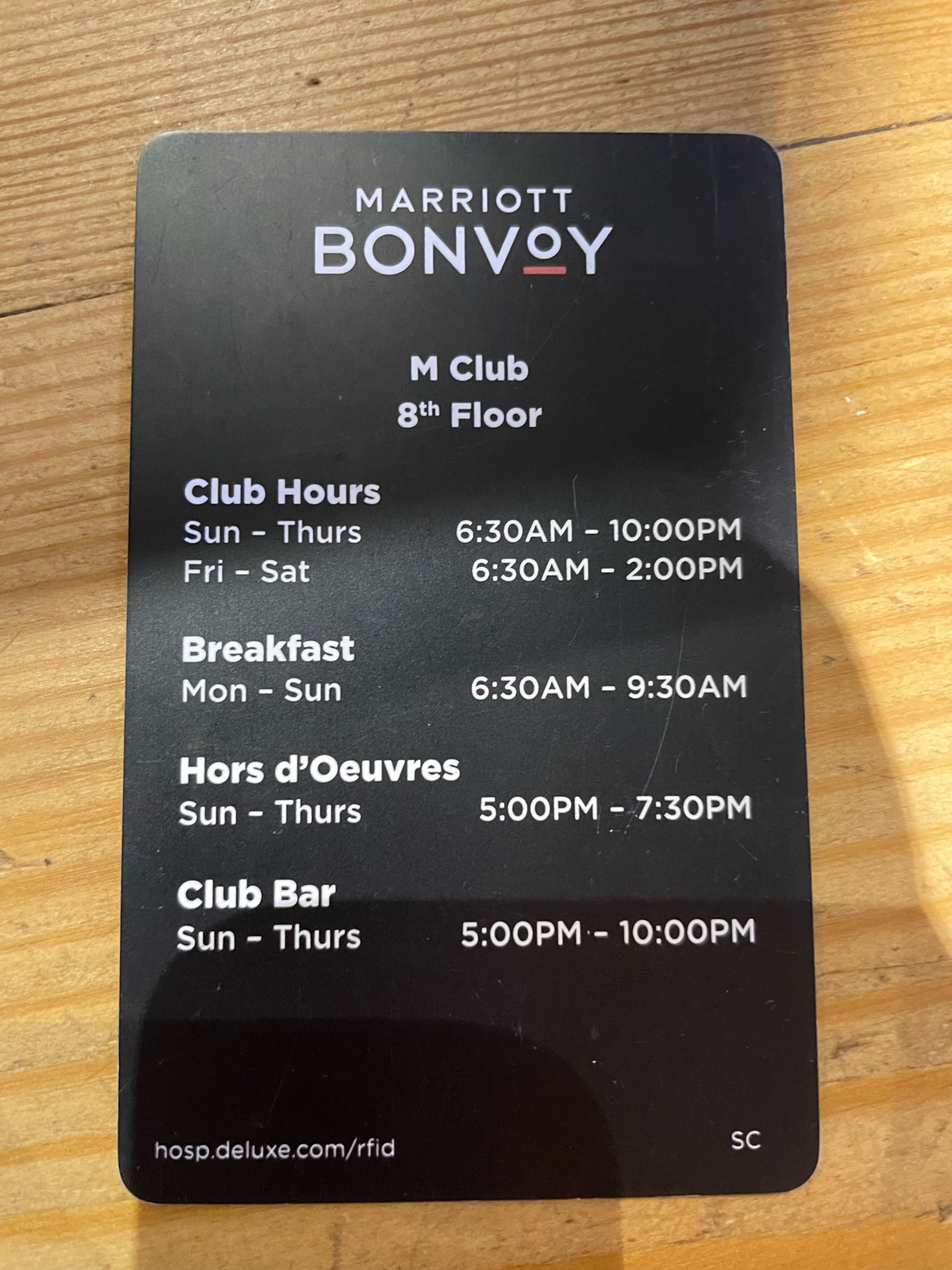 저는 메리어트 플래티넘이라 젤 저렴한 방에 묵더라도 라운지 액세스가 가능했어요.
