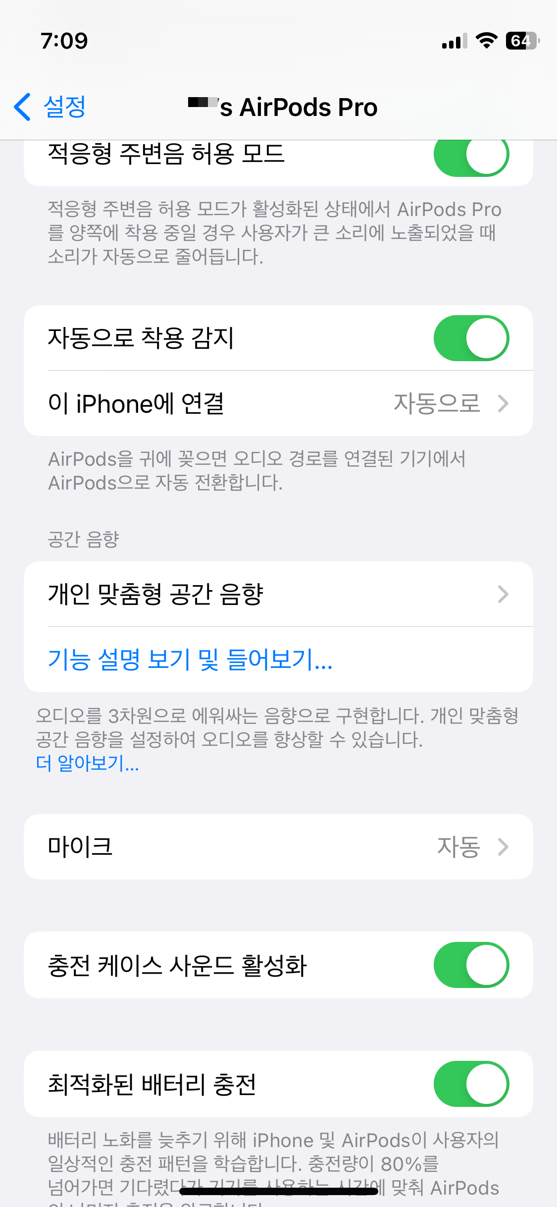 노이즈캔슬링도 예전에 헤드폰으로 쓴적은 있었는데 이번 에어팟 프로 2세대도 그정도의 성능이 나오는 것 같습니다.